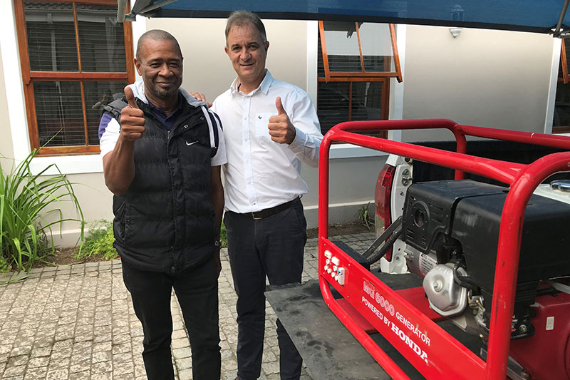 As part of our supplier development programme, we donated a Honda Generator to Intsikelelo Construction (Pty) Ltd (owned by Wayne Smart), which will enable them to continue working throughout loadshedding.